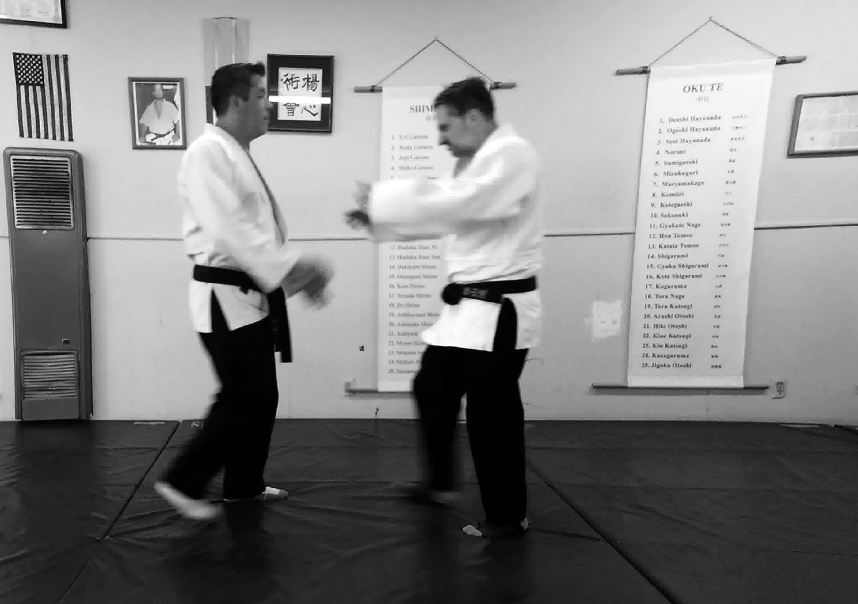 Be prepared to demonstrate kata from the following lists: Yawara, Nage Te, Shime Te, Goshin Jitsu, Oku Te, Kappo, Shinnin No Maki (1 through 10), Tanto and Tanju. Demonstrate effective blocks, strikes, and kicks.